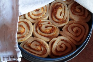Leivo vaihteeksi korvapuustit pitkin muotoon. 2,5 dl punaista maitoa 25 g hiivaa 1 dl sokeria 1 muna 2 tl kardemummaa 0,5 tl ...