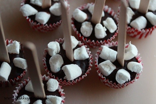 Rocky road saa täytteekseen appelsiinivaahtokarkkeja, appelsiinikuoripaloja sekä pähkinöitä. 16 palaa 250 g suklaata 30 g suolatonta ...